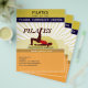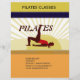 Design mit Frauen, die Pilates machen, aufwärmen, tanzen, yoga , ab trainieren und sonnenstrahlen im Hintergrund. Niedlicher Flyer für Ihre nächsten Yoga-, Pilates-, Sport- oder Tanzkurse. Es ist einfach, angepassten Text anzupassen.