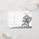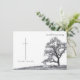 Diese Gedenkkarte hat ein dunkles, modernes und elegantes Design mit einem weißen Rahmen um die Vorder- und Rückseite. In stille Trauer - Baum auf einer Wiese. Namen, Text und Datum können in der Vorlage angepasst werden. Entwickelt von pASob-dESIGN.
