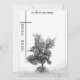 Diese Gedenkkarte hat ein dunkles, modernes und elegantes Design mit einem weißen Rahmen um die Vorder- und Rückseite. In stille Trauer - Baum auf einer Wiese. Namen, Text und Datum können in der Vorlage angepasst werden. Entwickelt von pASob-dESIGN.