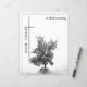 Diese Gedenkkarte hat ein dunkles, modernes und elegantes Design mit einem weißen Rahmen um die Vorder- und Rückseite. In stille Trauer - Baum auf einer Wiese. Namen, Text und Datum können in der Vorlage angepasst werden. Entwickelt von pASob-dESIGN.