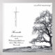 Dieses Denkmal Poster hat ein dunkles modernes und elegantes Design mit einem schwarzen Rahmen um die Vorderseite. In stille Trauer - Baum auf einer Wiese. Namen, Text und Datum können in der Vorlage angepasst werden. Entwickelt von pASob-dESIGN.