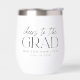 Feiern Sie den Absolvent mit diesem personalisierten Weinhändler! Der Abschluss-Weine-Tumbler präsentiert die Phrase "Cheers to the Grad" in gemischter schwarzer Typografie-Schrift und schwarzer Serifenschrift. Personalisieren Sie den Beifall zu den Grad Wein Taumeln mit dem Namen und Klasse des Absolventen Jahr. Dieser Abschluss Weintumbler ist perfekt, um den High School- oder Uni-Absolventen in Ihrem Leben zu geben und macht eine große personalisierte Abschlussfeier zu Gunsten!