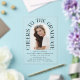 Laden Sie die Gäste zu feiern den Grad mit dieser Foto-Graduierung Party lädt ein! Die Einladung zeigt das Foto des Absolventen in einem Bogen-Rahmen mit "Cheers to the Graduate" in fett gedruckter, trendiger schwarzer Schrift mit mattiertem oder transparentem Acrylhintergrund. Personalisieren Sie die Front der modernen Graduiertenparty Einladung mit dem Namen und Party des Absolventen. Diese Akrylabschlussfeier ist perfekt für Absolventen der Highschool und der Uni.