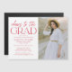 Wir laden Sie ein, den Absolventen mit unseren stilvollen magnetischen Graduiertenfeiern zu feiern! Die magnetischen Einladungen der Graduiertengruppe zeigen das vertikale Senior Foto Ihres Absolventen an. Die Phrase "Juers to the graduate" wird in trendy roten Schriften vorgestellt. Personalisieren Sie die Einladung der Graduiertenparty, indem Sie den Namen, den Namen der Schule, das Abschluss und das Party hinzufügen.