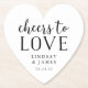 Machen Sie Ihre Hochzeitscocktailstunde noch unvergesslicher mit diesen süß-romantischen, herzförmigen Untersetzer, die "Beifall zur Liebe" und Ihren Namen und Ihren Hochzeitsdaten im unteren Teil des Forums enthalten. Das elegante, schwarz-weiße Typografie-Design ergänzt Ihren Hochzeitsempfang mit eleganten und leichten Akzenten.