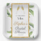 Die Liebe Champagner Botanisches Brautparty Teller mit zwei goldenen Champagner Gläser in einem blubbly toast to Liebe. Ein eleganter geometrischer Rahmen mit hübschen botanischen Blattakzenten umgeben den Text. Personalisieren Sie diese Brautparty-Party-Accessoires mit dem zukünftigen Vornamen und dem Datum Ihrer Brautparty-Veranstaltung.