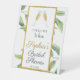 Diese Liebe Champagne Botanisches Brautparty Pedestal Sign bieten zwei blubbly Champagner Gläser in einem Toast zu Liebe. Ein eleganter geometrischer Rahmen aus Gold mit grünen grünen, grünen, botanischen Akzenten umschließt den Text. Personalisieren Sie dieses Brautparty Begrüßungszeichen mit dem zukünftigen Namen und dem Datum Ihrer Veranstaltung.