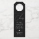 Eleganter Hochzeitsflaschenanhänger mit kühlem schwarzem Hintergrund mit dem handgeschriebenen Wort "Cheers" und der Phrase "To Liebe, Lachen & happy ever after". Dieses moderne Design verleiht den Wein- und Champagnerflaschen eine beeindruckende, stilvolle Touch für Hochzeitsfeiern, Verlobungsfeiern, Brautpartys und Jubiläen. Ideal für Paare, die eine schicke Schwarze Krawatte oder eine feierliche Feier mit zeitlosem Look planen.