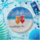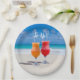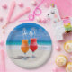 Teller zum Feiern für Paare Frostige Cocktails an einem warmen Strand ist das Bild mit "Zu uns" Text, oder ändern Sie es auf alles. Türkisblaues Meer und blauer Himmel geben ein tropisches Gefühl und ist perfekt, um eine Ehe, ein Jubiläum oder eine besondere Zeit zusammen zu feiern.