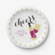 Diese modernen, sagt stilvoller PapierTeller "Beifall" in großem, mutigen, Skript. Ein Glas Wein und eine Weinflasche werden im Gold und im Pink/in der Magenta gefärbt. Die Wörter "guten Rutsch ins Neue Jahr" sehen, aber sind sicher aus, die Schablone zu benutzen, um das Jahr richtig zu zeigen! Wir haben Kunst von http://revidevi.etsy.com verwendet.