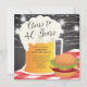Herzlich willkommen zum 40-jährigen Geburtstagsgrill mit einer Bierbrauerei, Tasse & Hamburger Set auf beliebtem Chalkboard-Hintergrund mit Hängeleuchten.