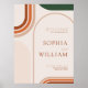 Modernes Hochzeitswillkommenposter mit Bogen-Formen in Terrakotta, Rost, gebranntem Orange und dunkelgrünen Smaragdtönen. Sammlung: https://www.zazzle.com/collections/boho_arch_abstract_wedding_collection-119061662657911589