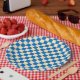 Beige + Blauer Karo Prüfpappmuster Pappteller