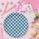 Beige + Blauer Karo Checkered Checkerboard Muster Paper Teller