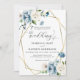 Beige Blue Elegant Floral Gold Frame Wedding Einladung
