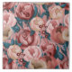 Keramik Kachel mit Abstraktem Ölgemälde beige braune Blume mit blauen Blätter floralen Hintergrund. Helle Wohngestaltung Keramik Fliesen.