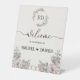 Herzlich willkommen zu Ihrem besonderen Tag mit unserem personalisierten Empfang auf unserem Hochzeitsschild. Unsere individuell gestalteten Hochzeitsschilder sind in verschiedenen Materialien erhältlich, von DIY-Papierplakaten bis zu hochwertigen, kristallklaren Acrylplatten. Ideal, um auf einem Soal, in einem Foto oder an einer Wand zu sitzen und eine einzigartige Touch zu Ihrer Veranstaltung hinzuzufügen!