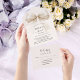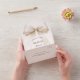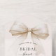 Beige, cremefarbene Unterlage, mit großem Bogen geschmückt. Personalisieren und hinzufügen von Namen, Party, UAWG, Rücksendeadresse und Namen.