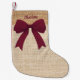 Beige Imitate begraben Strumpf, fügen Sie Ihren Namen.Dekoriert mit einem bordeauxfarbenen Bogen. Es ist ein Bild auf Einbruch, kein richtiges Oberteil.