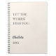 Beige, cremefarbene Unterlage. Inspiration, motivierend Zitat: Lass die Wörter finden Sie. Personalisieren und fügen Sie Ihren Namen und ein Jahr. Grauer Text, du kannst ihn in Schwarz ändern, wenn du ihn will, um mehr herauszuheben.