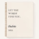 Beige, cremefarbene Unterlage. Inspiration, motivierend Zitat: Lass die Wörter finden Sie. Personalisieren und fügen Sie Ihren Namen und ein Jahr. Grauer Text, du kannst ihn in Schwarz ändern, wenn du ihn will, um mehr herauszuheben.