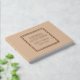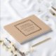 Solid beige Farbe, einfaches Gästebuch mit stilisierten Folienbedruckungen innerhalb eines quadratischen Rahmens, der den Namen der Braut und des Bräutigams sowie das Hochzeitstermin in Ihrer Auswahl an Farbfolienbedrucken enthält. Hier in Rose Goldfolie drucken. Wählen Sie Ihren Gastbuchstil aus.