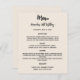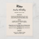 Beigefarbener Hintergrund. Schwarzer Text. Personalisieren Sie Ihren Namen, das Datum und das Menü und fügen Sie es hinzu. Sie können mehr Text hinzufügen, Fotos auf der Rückseite. 1 Blatt = 1 Menü, mit dem die Kante an Kante aufgedruckt ist.