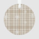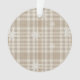 Celebrate the season with this neutral gingham plaid ornament, layered with delicate hand-drawn snowflakes and printed on a warm linen-texture background.