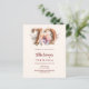 Eine moderne, stilvolle und glamouröse Einladung zum 70. Geburtstag. Beige, cremefarbene Einrichtung, mit Pfirsichfarben und lila Blume in Aquarelltönen. Der Name ist mit einem modernen handgeschriebenen Stilskript geschrieben. Personalisieren Sie Ihre Party-Daten und fügen Sie sie hinzu. Nummer 70 wird mit einem Schriftart im Ballonstil geschrieben, Skript. 1 Blatt = 1 Einladung mit Druckkante bis Kante.