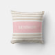 Elegante und moderne Seeart für quadratischen Throw und lumbale Größe Kissen oder Kissen mit einem einfachen, modernen und stilvollen Entwurf des gestreiften Musters, der mit Ihrem Namen in einem preppy Schriftart kundenspezifisches mit Monogramm ist. Taupe oder beige und weiße horizontale Streifen kontrastiert zu einem Pastell- oder hellrosa Farbblockhintergrund. Personifizieren Sie Ihr Geschenk, indem Sie Ihren eigenen Namen, Monogramm oder Initiale addieren. Beschließen Sie Ihren eigenen Schriftart und Farben, um es Ihre Selbst zu machen. Dieses stilvolle, trendy und Chic, zeitgenössisches Entwurfskissen oder Kissen erhöhen jeden möglichen Wohngestaltung-, Wohnzimmer-, Sofa-, Aufenthaltsraum-, Schlafzimmer-, Büro-, Boots-, Strandhaus-, Feiertagshaus-, Kinderzimmer- oder Hochschul- oder Unischlafsaalraum, Jugendliche oder scherzen Schlafzimmer. Passend für jemand Sie Liebe einschließlich Männer, Frauen, Jugendliche, Jungen, Mädchen und Baby.