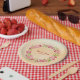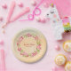 Schönes Blumenkränz in Rot und Rosa über beigem Hintergrund