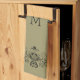 Beige Imitate Leinen Eintopftextur mit Vintagen Wirbel schwarzen Spitzen. Benutzerdefiniertes und optionales Monogramm