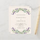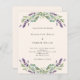 Beigefarbener Hintergrund mit lila Lavendel-Blume und Eukalyptusgrün. Personalisieren und Ihre Namen und Details. 1 Blatt = 1 Einladung mit Druckkante bis Kante. a