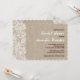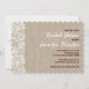 Natürliche beige Leinen Einenguss Textur und elegante Vintage, weiße Blumenspitze, Brautdusche Einladung Vorlage. Vorschlag für einen Text in weiß und dunkelbraun
