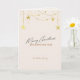Light beige minimalistic Christmas folded card with gold star accents, customizable text for your message, and a custom photo on the back.