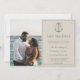 Dieses Nautical Monogram Foto Ankündigung Datum freihalten mit einem einfachen Textdesign, einem einfachen nautischen Anker für die Braut und Bräutigam Monogramm in einem modernen umrissenen Kasten, gewartet für Ihr Foto und Ihre Hochzeitsdetails, um sich anzupassen. Zusätzliche Farben sind mit diesem Design verfügbar. Ideal für Paare mit einem Hochzeitsthema an der Küste.