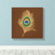 Beige Pfauenfeder für Schokoladenbraun Leinwanddruck
