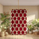 Beige Quatrefolie Ikat Muster Burgundy Hintergrund Duschvorhang