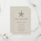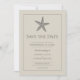 Dieses Starfish Monogram Foto Ankündigung Datum freihalten mit einem einfachen Textdesign, einem leicht geneigten Seestern, Braut und Bräutigam Monogramm in einer modernen umrissenen Box auf der Rückseite gewartet für Ihr Foto und Ihre Hochzeitsdetails, um auf der Vorderseite anpassen. Zusätzliche Farben sind mit diesem Design verfügbar.