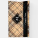 Beige und braune Tartan-Gestaltung. Nahtloses Muster. Benutzerdefinierter Text und Monogramm.