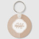 Beige und Tan-Hahnentrittmuster-Monogramm und Name Schlüsselanhänger