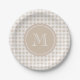 Beige und weißer Gingham, Ihr Monogramm Pappteller