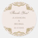 Fügen Sie Ihren Gastgeschenke Hochzeiten eine zeitlose Touch mit diesem personalisierten, Vintagen Barocksticker-Dankeschön-Sticker hinzu, der sich perfekt für ein außergewöhnliches Fest eignet. Dieses Design mit einem verzierten mochafarbenen Set und einem zarten, rosa-beigen Hintergrund verbindet die Eleganz des Rokokos wunderbar mit einer modernen Drehung. Die raffinierte Mischung aus modernen Schriftart und Drehbüchern verleiht dem Hotel seinen klassischen Charme und eignet sich ideal für eine Vintage, elegante Barockhochzeit. Ob Geschenktaschen, Geschenkdosen oder Umschläge, dieser Dankeschön-Aufkleber bringt Ihnen einen anmutigen Abschluss in Ihren besonderen Tag.