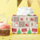 Ein Verpackungspapier mit einigen Weihnachtssymbolen auf einem quadratischen Hintergrund in Beige-Tönen. Frohe Weihnachten!