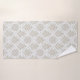 Erhöhen Sie Ihre Baddekoration mit unseren glamourösen beige-weißen Vierblatt-Badetüchern, die ein funkelndes Muster aufweisen, das einen Hauch von Raffinesse verleiht.