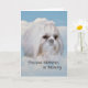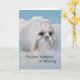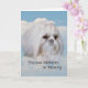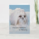 Ein reizender und weicher Hund Shih Tzu mit großen dunklen Augen wird in einen Hintergrund des Himmels und der Wolken auf dieser Beileidskarte für jemand gemischt, das einen Haustierhund verloren hat. Ein Angebot des Beileids diesmal lässt Ihren Freund wissen, dass Sie an sie als erhalten durch dieses Herz denken, das Zeit bricht. Der Innere-Vers ist eine Textschablone und leicht geändert oder gelöscht.