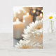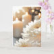Im Vordergrund werden nahe, weiße Chrysanthemum-Blume sichtbar angezeigt, sanft leuchtende Kerzen verschwimmen im Hintergrund und schaffen ein warmes und ruhiges Ambiente. Alle Texte können geändert werden.