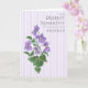 Eine sehr hübsche Grußkarte, um Ihr Beileid mit jemandem über den Tod ihres Bruders auszudrücken. Holz oder wilde Veilchen haben viele Assoziationen, aber William Shakespeare assoziierte englische Veilchen mit Tod und Trauer, obwohl sie oft das erste Anzeichen für die Ankunft des Frühlings im Wald sind, sodass sie auch eine Botschaft der Hoffnung und Erneuerung vermitteln. Dieser violette Klumpen wurde von Judy Adamson von Hand in Aquarellfarbe gemalt und der Hintergrund ist mit einer sehr blassvioletten Farbe gestreift. Der Gruß auf der Titelseite lautet: "Mit tiefem Beileid auf den Verlust Ihres Bruders" und die innere Nachricht ist nur ein Vorschlag, den Sie leicht personalisieren können.