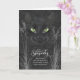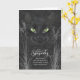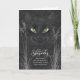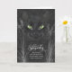 Das Gesicht einer schwarzen Katze verblasst in einen kohlegrauen, bedrängten Hintergrund, der das Aussehen einer gemalten Textur verleiht (dies ist ein digital geschaffener Effekt, der bei der Touch nicht zu spüren ist, wenn sie gedruckt wird). Große Gräser und hellgrüne Augen paaren sich mit einer zarten Nachricht für den Verlust einer Katze.