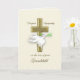 Mit dieser eleganten Beileid-Karte können Sie Ihr Beileid aussprechen. Ein goldenes Kreuz mit einer weißen Taube voller Ruhe.